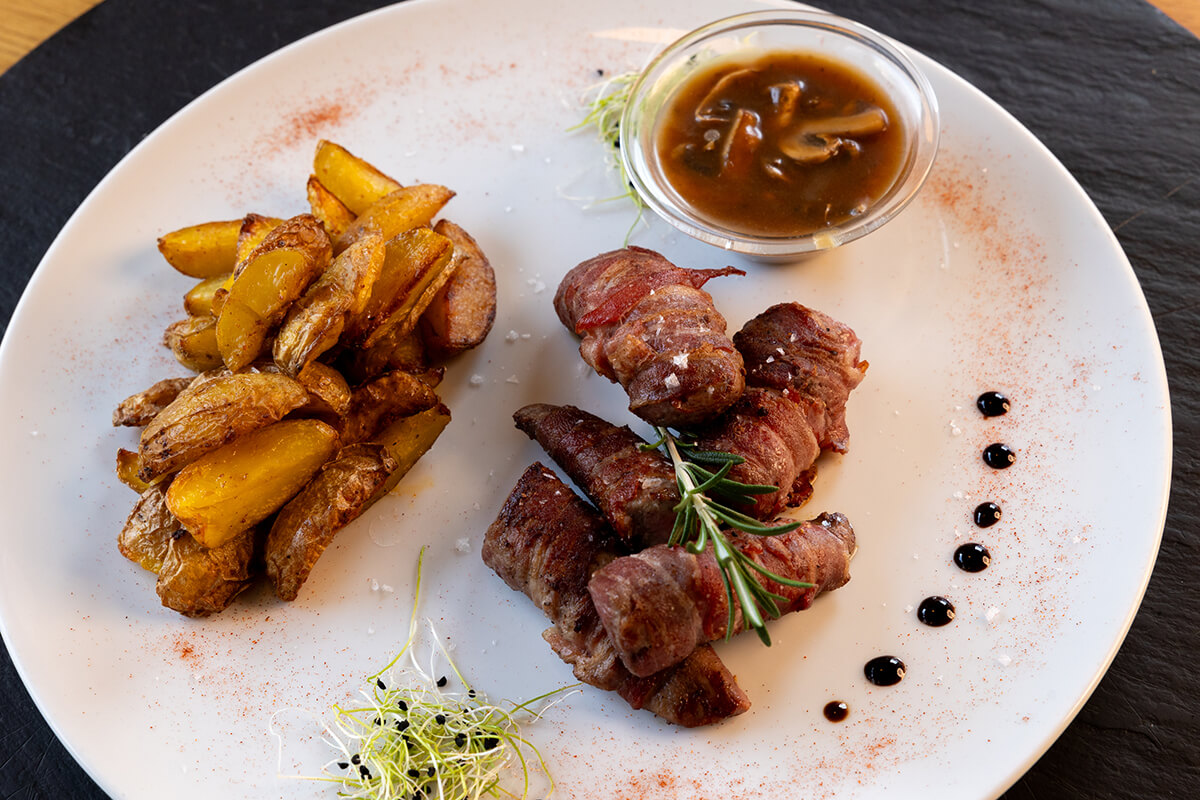 | CONTADINO 100% Schweizer Rindfleisch, Rösti, frische Zucchini, Speckstreifen, Salat, Trüffel-Mayonnaise  |